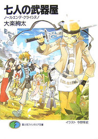 「七人の武器屋 ノース・エンデ・クライシス!」 本 2009年06月12日 大楽絢太/富士見書房新入生マーガス、九死に一生の前人未踏領域へ!超一流レンジャースクールで修行に打ち込んでいたはずのマーガスは、いかにして聖剣と出会い、指名手配犯になったのか!?短編3本と、中編1本。短編は、確かドラゴンマガジン本誌に掲載されたものだったような・・・。看板息子・ケンジの話は、なかなかインパクトがあったので覚えていました。短編は、エクスのメンバーのノリの良さが前面に出ていて、おもしろかったです。中編もそれはそれで良かったのですが、なんか、短編とビミョーにテンションが違うというか。スイッチの切り替えが上手くいかなくて、これは別で読みたかったかも・・・と思いました。いつも通り、語り手はマーガスで、足りなかったマーガス成分が補給できたので満足です。やはりこのシリーズには、彼が必要ですよ!アスベルのレンジャースクールに入学したマーガスは、クラスメイトの2人と共に選抜試験をくぐりぬけ、ノース・エンデ探索キャラバンに加わることになる。しかし、3人はノース・エンデで、探索隊とはぐれてしまう。彼らはノース・エンデの意思、ウラヌスと出会い、彼女を天空郷へ送り届ける約束を交わす。そこに立ちふさがるオズの陰謀!拘束された3人は、ウラヌスとの約束を果たすことができるのか・・・!という感じで、前の話のマーガスサイド。色々と?だったところが補完されてスッキリしました。最大の謎は、なぜに指名手配!?でしたから~。やはり、マーガスは彼なりの正義を通してああいうことになったんだな、と納得できました。最後のサエちゃんの一喝は、ホント、よくぞ言ったー!って感じでした。敵を案内しちゃうし、何やってんだよ、と前から思っていたんだけど、やっと物申してくれて嬉しいよ・・・。あと2冊で終わりと思うと寂しいなあ・・・。「貴様・・・・・・名前はマーカムだったな?」「いえマーガスです」リーダーは、やはりどこまでいってもリーダーだった・・・。。